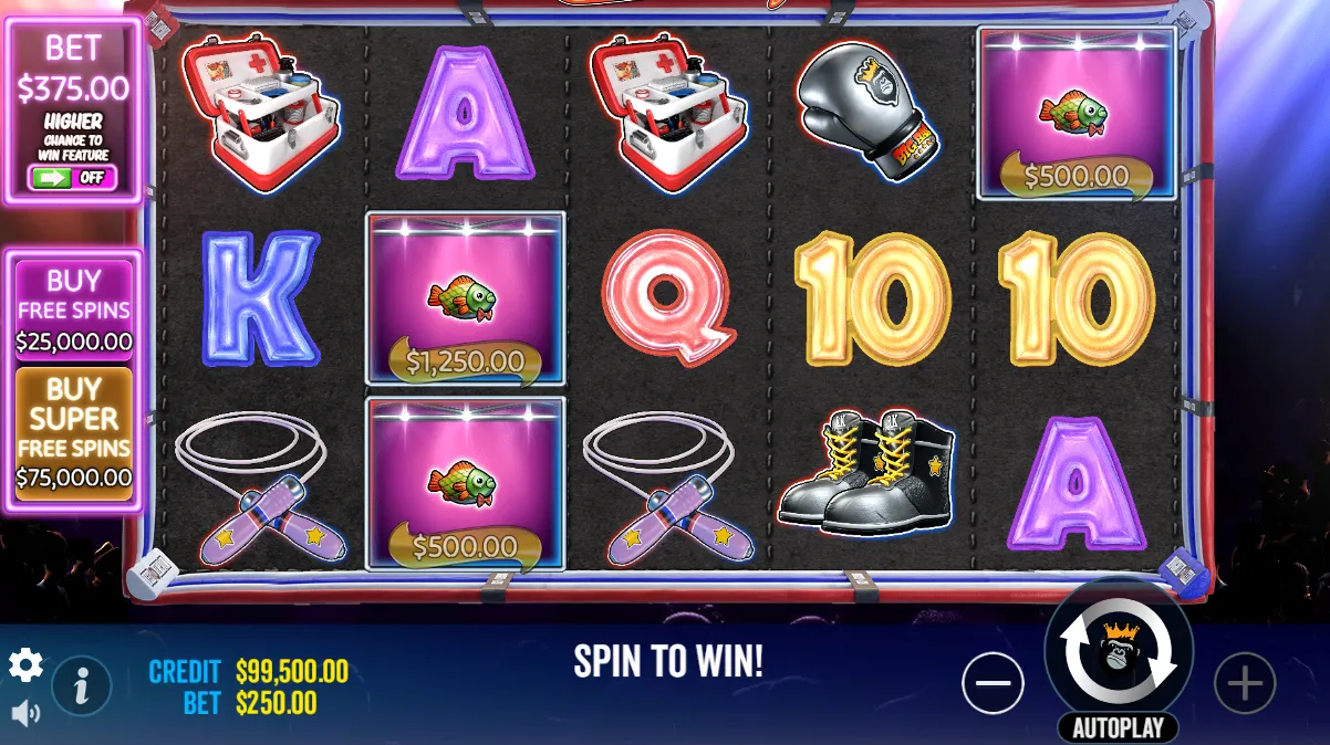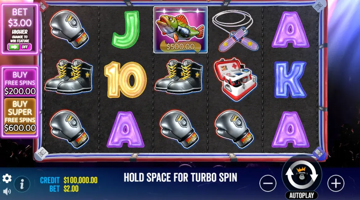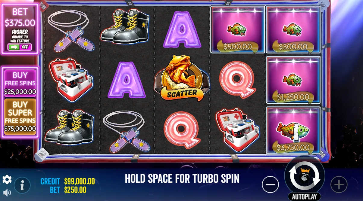 Big Bass Boxing Bonus Round caters to players who want instant access to the action with its Feature Buy options. For 100x your bet, you can trigger the standard Free Spins round, starting with at least 3 Scatters. There’s also a Super Free Spins option available for 300x your bet, where only three Wilds of any color are needed in the meter to retrigger the feature, making it easier to climb the multiplier ladder and secure more free spins. The Feature Buy is ideal for those who don’t want to wait for bonus rounds to land naturally and are willing to invest for a shot at the game’s highest rewards. This flexibility makes the slot appealing to a wide range of players, from casual spinners to high rollers seeking fast-paced bonus action.