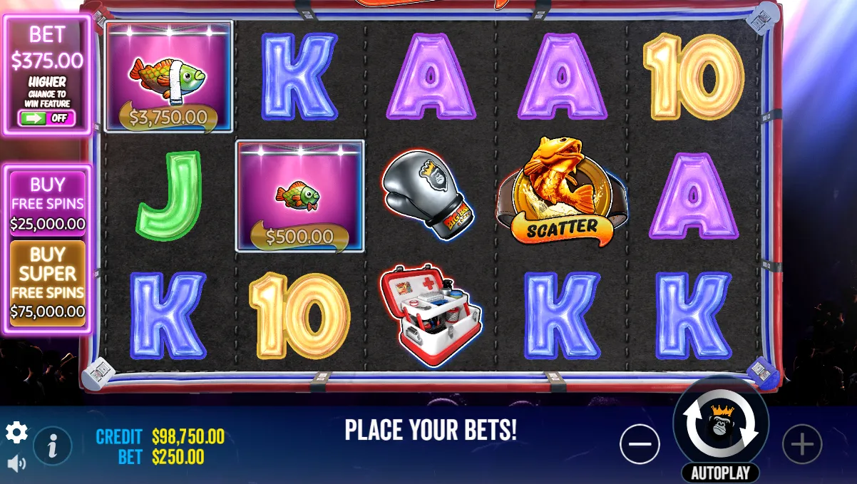 Volatility in Big Bass Boxing Bonus Round is rated as high, meaning wins may be less frequent but can be much larger when they occur. This high-risk, high-reward profile is best suited for players who enjoy the thrill of chasing substantial payouts and are comfortable with swings in their bankroll. The combination of a strong max win, competitive RTP, and high volatility ensures an exciting and potentially lucrative experience for those who step into the ring.